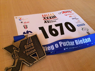 Nie wiem skąd pojawia się we mnie myśl, że nie pozwlę się wyprzedzić, że będę walczyć! Nie wiem też skąd mam siłę, aby podnosić do góry nogi i biec z całych sił wcale nie machając rękoma przed sobą! Zapitalam jakby od tego miało zależeć moje życie. Robię chyba najdłuższe kroki jakie kiedykolwiek stawiałam. Niebieskiej koszulki w polu widzenia nie mam... ale lecę jak pocisk na podest z metą. Słyszę jak konferansjer mówi moje imię, zatrzymuję się, dostaję medal. Całuję go i uświadamiam sobie, że moja mordęga dobiegła końca... Zaczynam płakać.
